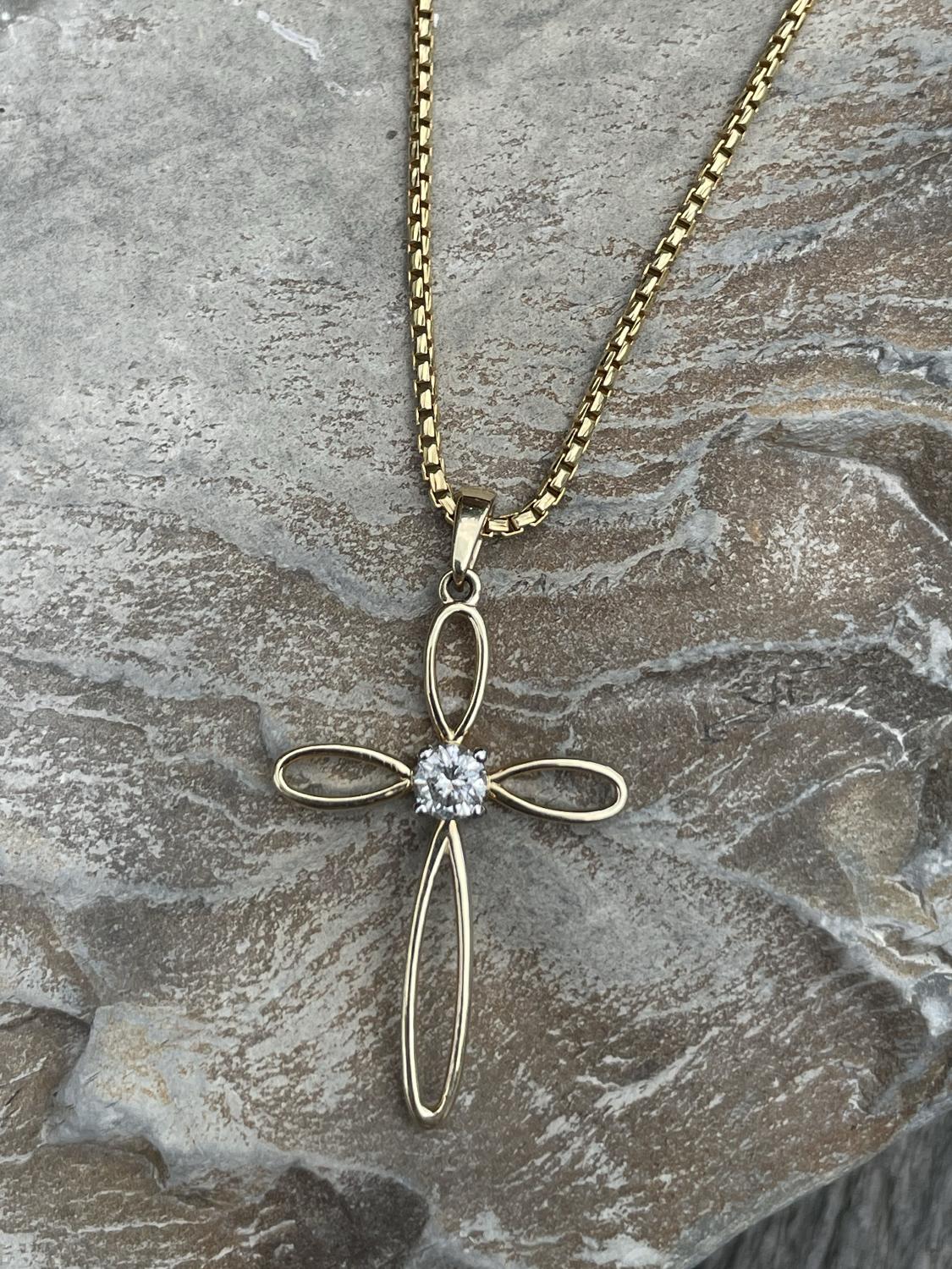 Besonders gut zu kombinieren mit weiterem Damenschmuck in Gold. Schlichte Ohrringe für Damen können sehr passend dazu kombiniert werden. Auch goldene Stecker sind kein Problem, den der Kreuzanhänger wurde sehr klassisch designt.